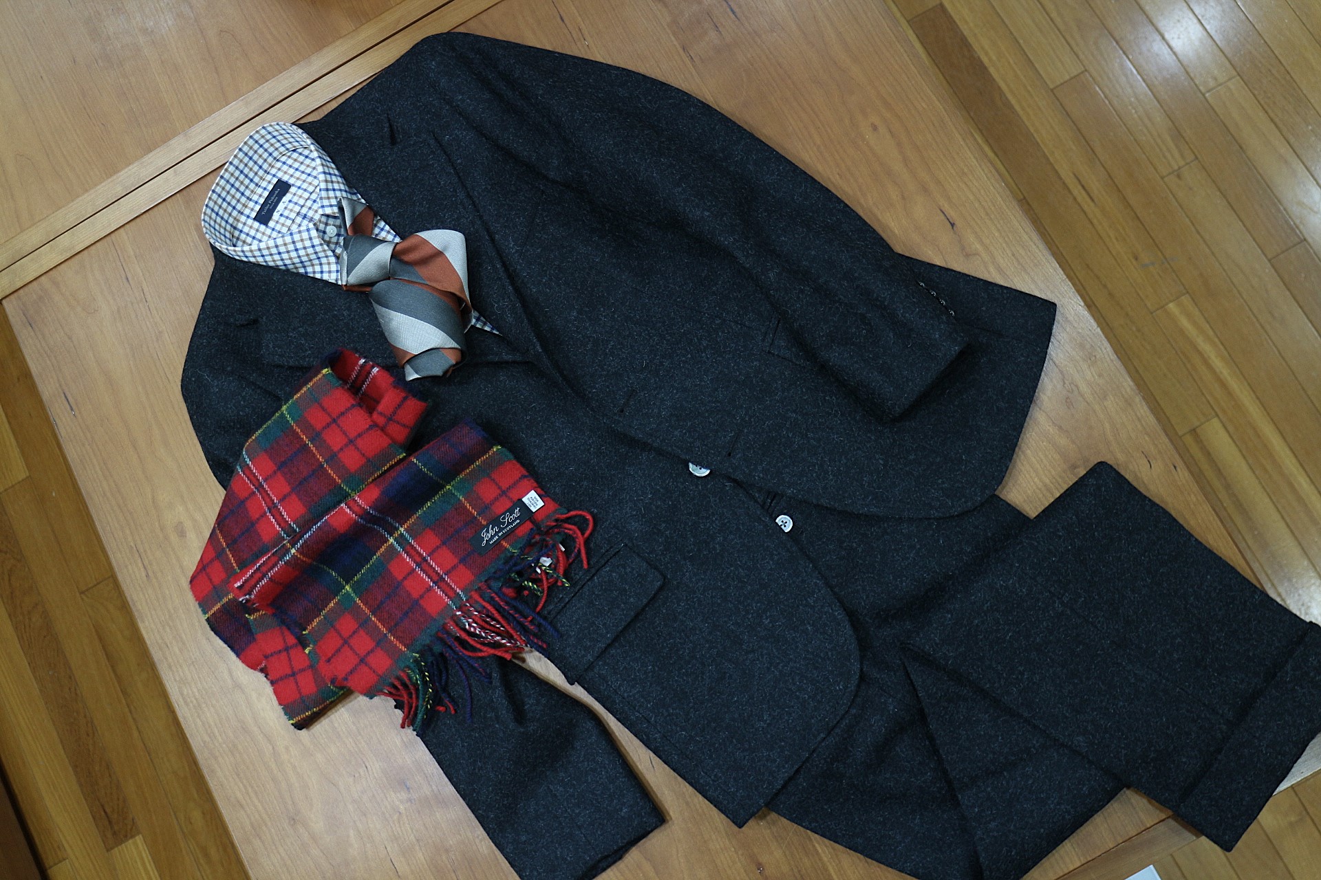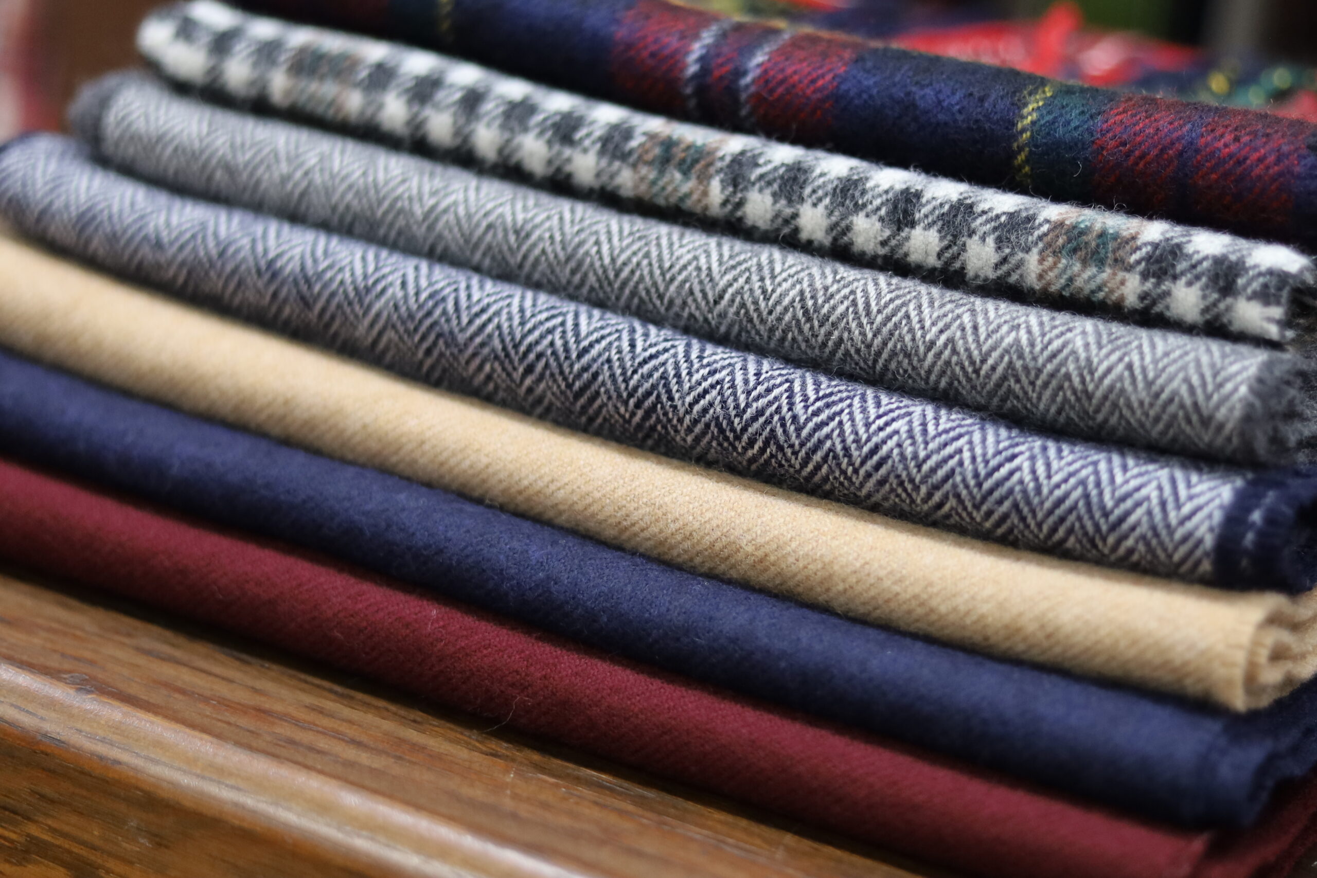 スコティッシュな風合いを活かしたマフラーを