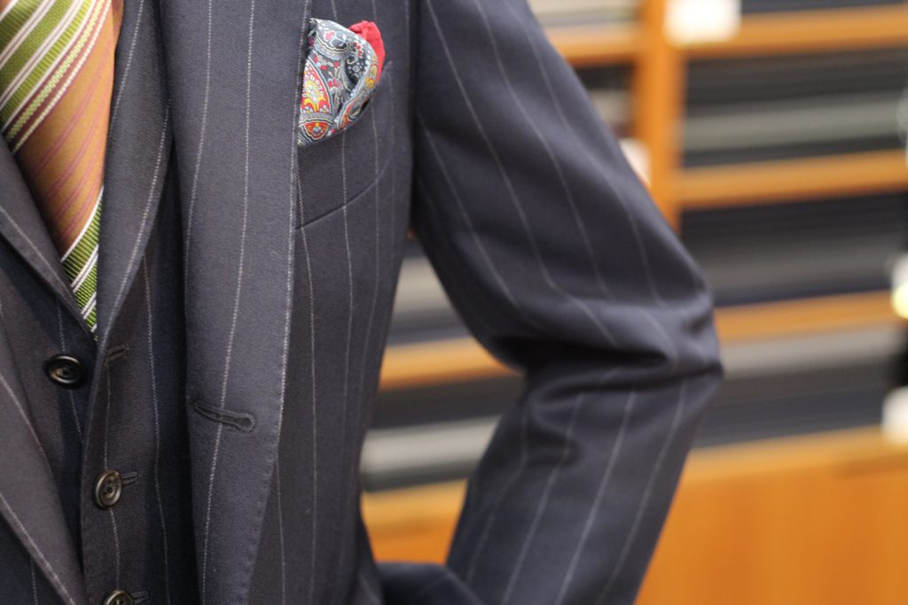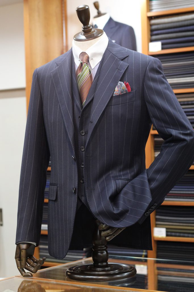 ジャケットのフロント釦は「3釦の段返り仕様」