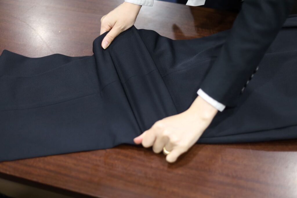 コットンやトレーニョ3Dウールなどのストレッチの効いたスーツ生地ですと