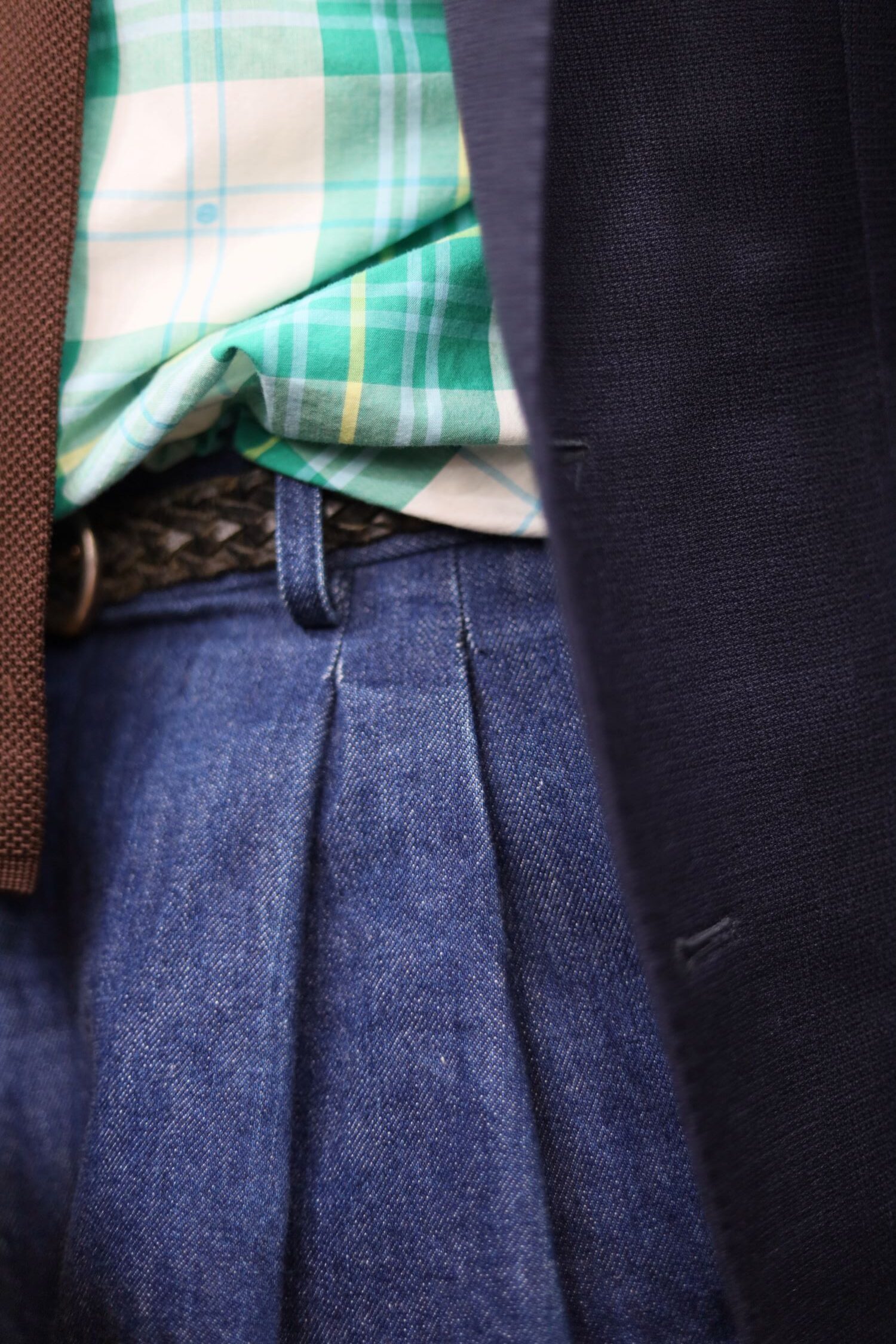 紺ブレ×デニムコーデ。