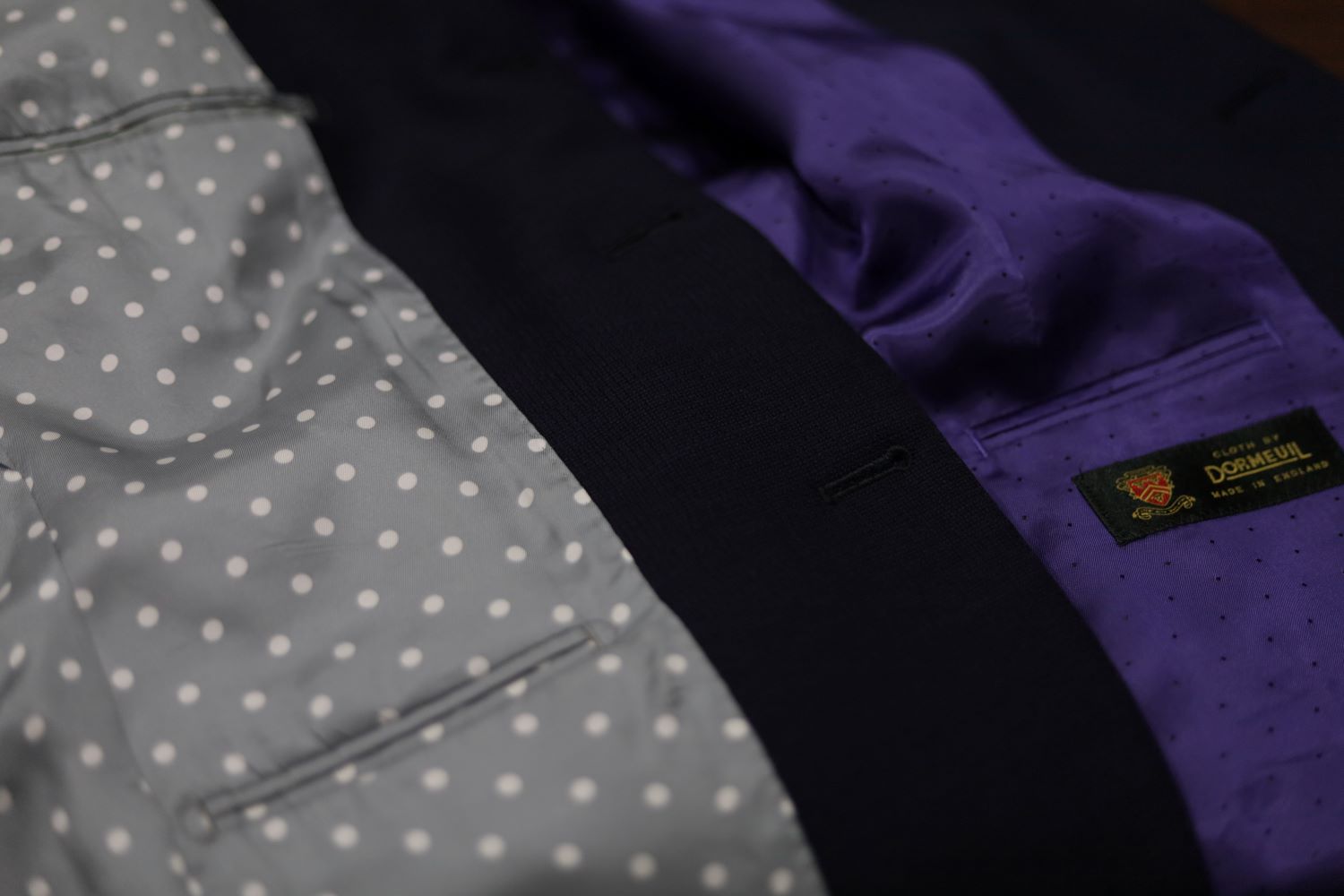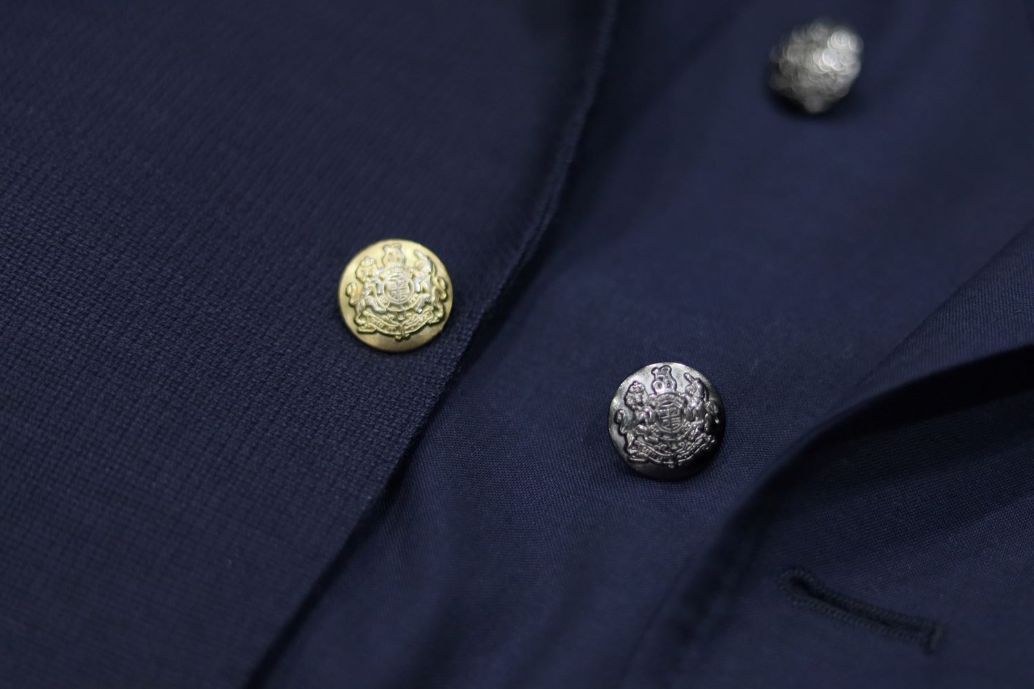 シルバーのボタンは先月仕立てたばかりなので、